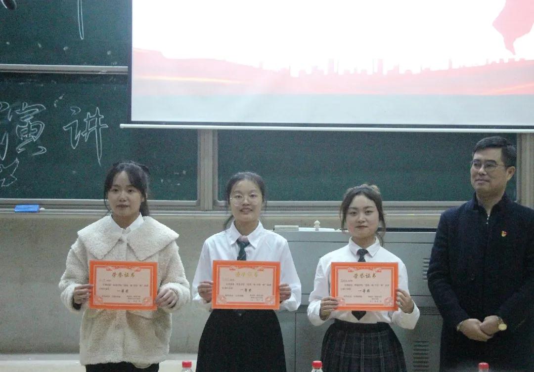 陈志武书记宣读征文比赛、摄影比赛、三笔字比赛等比赛的获奖名单。此后,陈志武书记为获得演讲比赛一等奖的同学颁奖,张志新副书记为获得比赛二等奖的同学颁奖,刘军主任、曾琳娜主任为获得比赛三等奖的同学颁奖,刘澍心书记和张志新副书记为获得“全能之星”的同学颁奖。