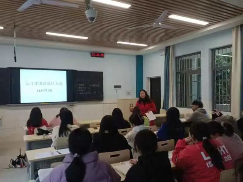 听课结束后,陈莉老师组织见习学生们进行集中评课。学生们就听课内容进行讨论交流,分享收获感悟。随后由陈莉老师对学生观点总结评价,同时指出课堂教学的亮点以及有待改善之处,学生们纷纷表示获益颇丰。