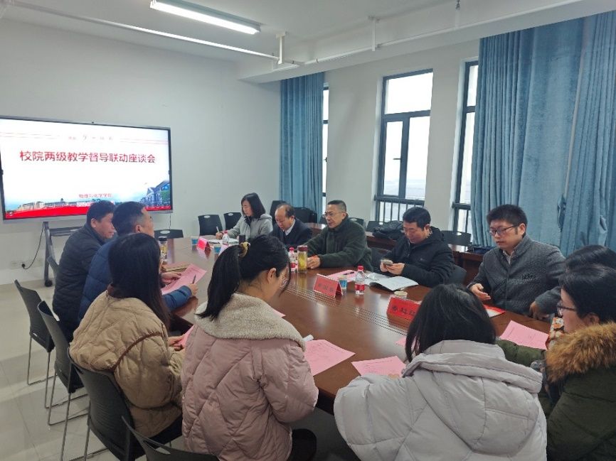 12月10日上午第三节课,校院两级督导组成员在润寰北303教室听了董建玉老师的《有机化学(一)》课程。随后,督导组成员在百熙楼1013会议室召开了校院两级督导联动座谈会。会议由陈志武书记主持,邹立军副院长关于近期韩国伦理