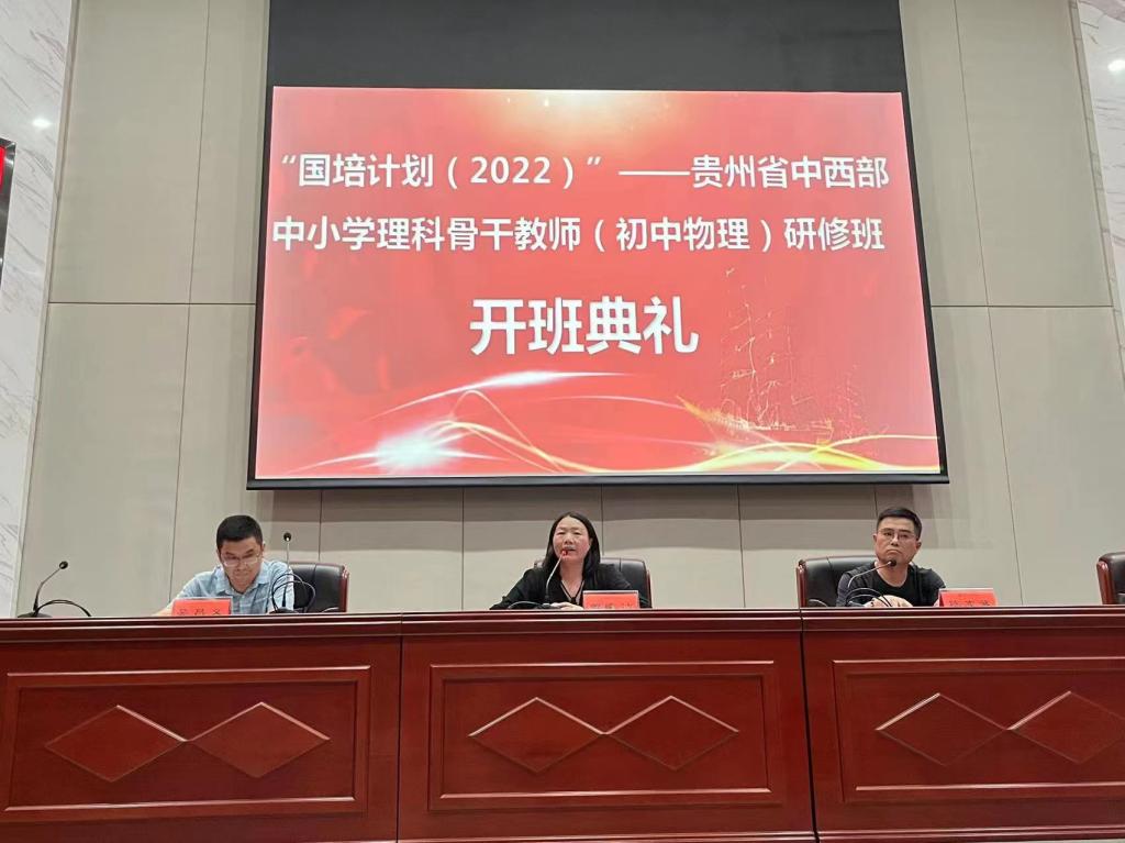 承接的贵州省“国培计划(2022)”—中小学理科骨干教师(初中物理)提升研修项目于2022年8月10日在百熙楼228顺利开班,贵州省中小学理科骨干教师(初中物理)国培一班、二班、三班的全体班主任、教学秘书及全体学员参加了开班典礼。
