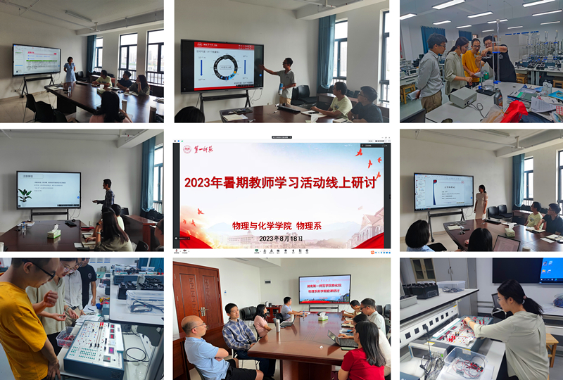 为了进一步提升教师的课堂教学水平,全面提高我校人才培养质量,促进教学质量和教学水平的不断提高,物理系在暑期和开学准备周积极开展了一系列备课磨课活动。备课分为三个阶段。首先,全系教师自主备课并修改制定教学大纲。接着,教学导师对新进博士进行一对一备课磨课指导。最后,由大学物理、课程与教学论、大学物理实验课程团队分别进行线下磨课。