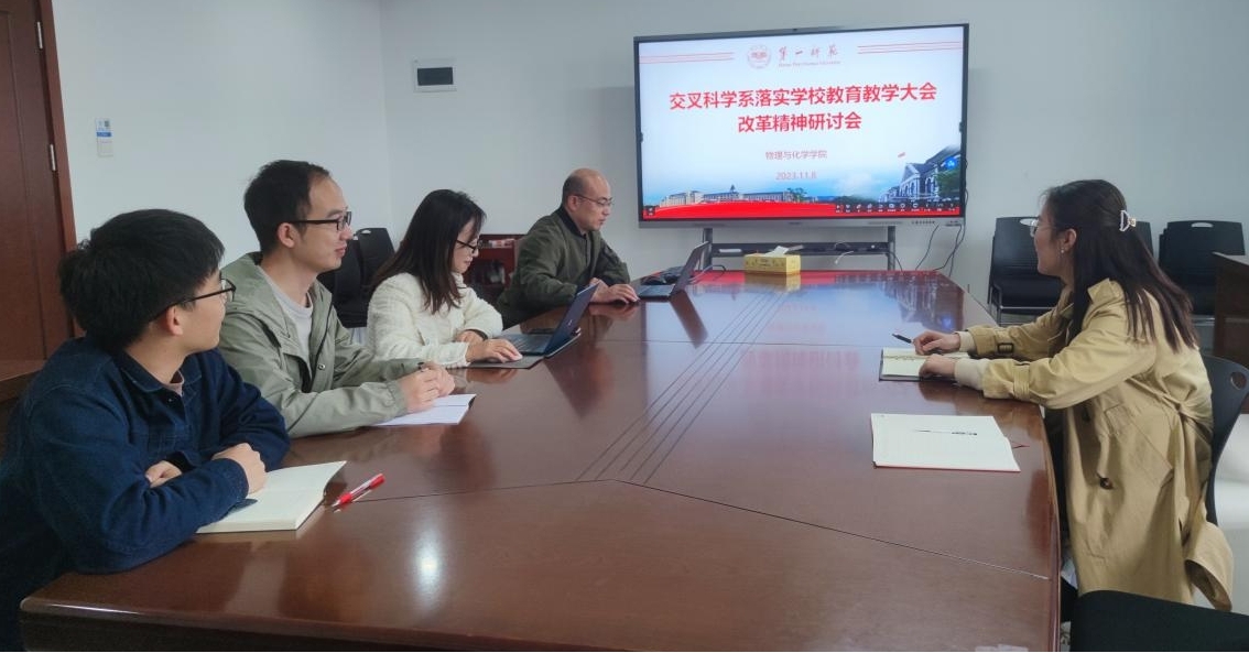 交叉科学系全体教师在百熙楼1013会议室召开了《关于深化本科教育教学改革,全面提高人才自主培养质量的意见》的研讨会。