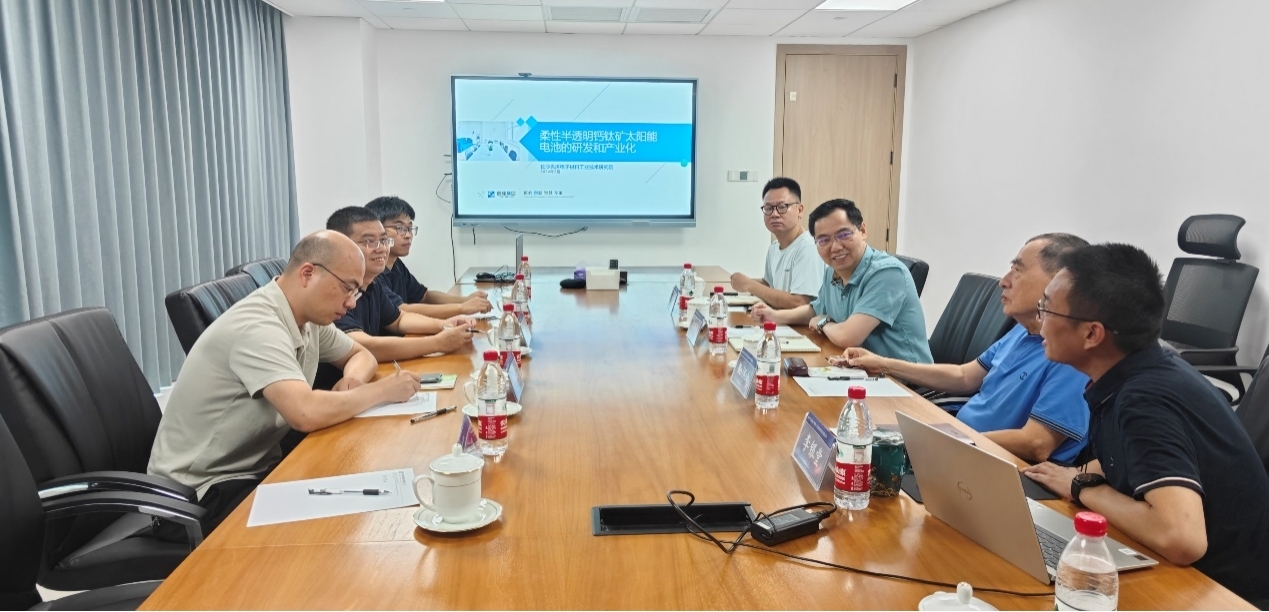 吴院长一行受到了创瑾集团公司董事长周佩先、总经理李银堂、IEEE院士Wei. Koh、技术总监赖金洪等高层热情接待,双方在公司会议室举行了交流会。会议伊始,创瑾技术总监赖金洪以《柔性半透明钙钛矿太阳能电池研发和产业化》为主题详细介绍了公司最新研究进展。赖总监的讲解深入浅出,从项目背景、技术原理、研发进展到产业化前景等方面进行了全面阐述,然后大家就共同关心的问题进行了讨论。接着,创瑾董事长周佩先对吴院长一行到访表示热烈欢迎,同时指出:1)人才是企业发展的第一资源,创瑾高度重视与高校合作,希望通过共建实训基地、联合研发项目等方式,吸引更多优秀人才加入创瑾大家庭,推动柔性电子技术领域的创新与发展;2)科技创新是国家战略,产学研合作和资源整合是趋势,高校和企业融合一方面为社会培养高素质人才,一方面为社会高效的创造价值。3)战略合作的前提是有共同的使命和高度互信、互助、开放,并形成战略协议。然后,创瑾技术研究院院长Wei. Koh博士从国际视角分享了柔性电子技术的发展趋势与挑战,为双方合作提供了宝贵的意见和建议。