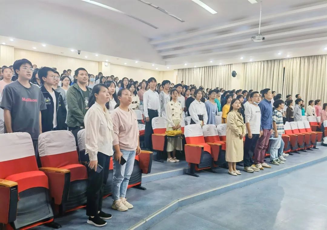 学生代表教育学院2021级小学教育文1班段熠圣发言。仪式最后,全体师生起立,奏唱《国际歌》。