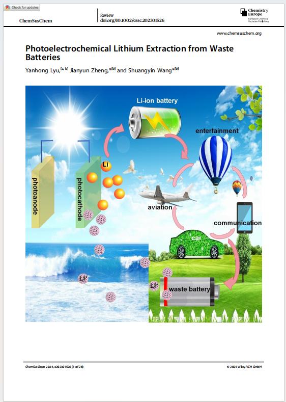 “润之人才计划”骨干教师、化学系吕艳红博士老师在JCR1区期刊、欧洲化学学会杂志《ChemSusChem》上发表题为《Photoelectrochemical Lithium Extraction from WasteBatteries》论文。此文韩国伦理