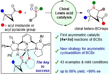 学科团队建设计划支持下,光电材料制备与检测学科团队武文彪博士与湖南大学冯见君教授团队合作以第一作者身份在国际顶级期刊《Nature Communications》(中科院一区,IF = 14.7)发表题为《Enantioselective formal (3 + 3) cycloaddition of bicyclobutanes with nitrones enabled by asymmetric Lewis acid catalysis》的研究论文。