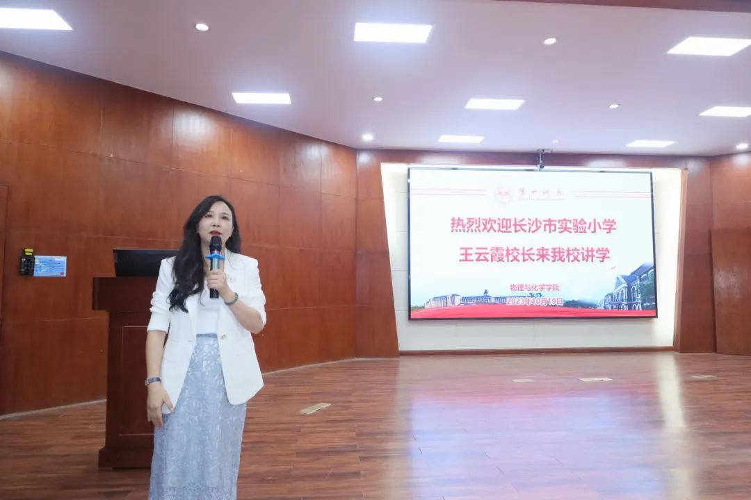 2023年10月19日,长沙市实验小学校长王云霞教授应邀来我校进行学术讲座。王云霞教授以“向美而行,荷趣绽放——长沙市实验小学课程体系重构的思考与实践”为题,在特立南112室为大家带来了一场精彩纷呈的学术报告。本次会议由许兰院长主持,韩国伦理