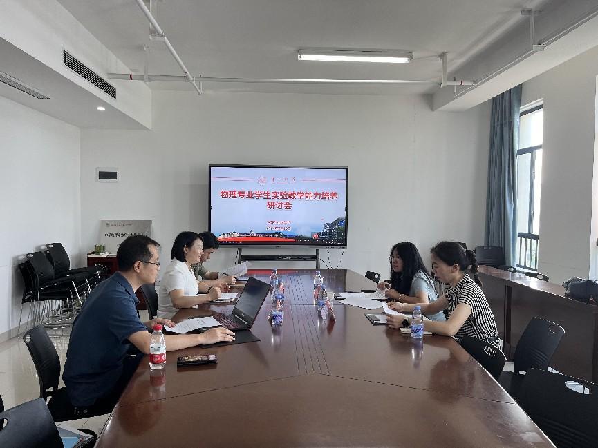 物理学专业学生实验教学能力研讨会在百熙楼1013召开。长沙市雅礼外国语学校肖益玲教师、雅礼实验中学文姣老师应邀出席,学院院长许兰、副院长邹立军、中学物理实验与创新课程负责人艾振宙出席,会议由院长许兰主持。