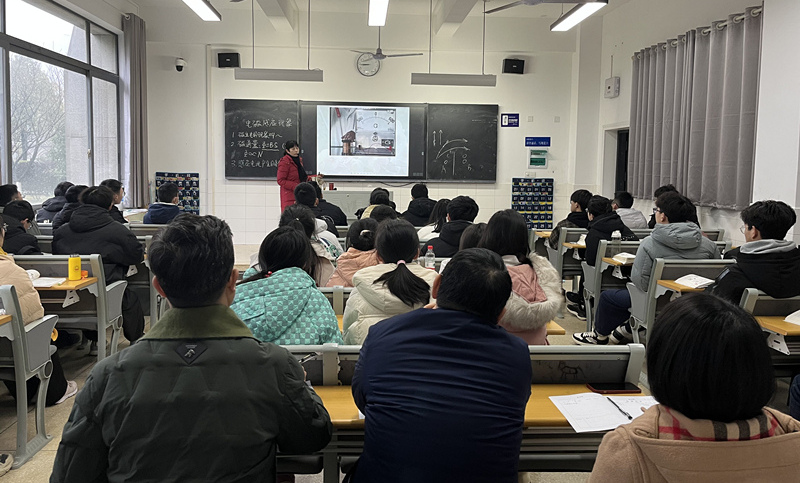 颜琳老师的基础物理(四)第一节课。师生精神面貌很好,教学秩序井然,学生到课率100%。听课后,罗成翼表示,教师讲授通俗易懂,语言逻辑清晰,师生互动良好,课堂效果整体不错,且对韩国伦理