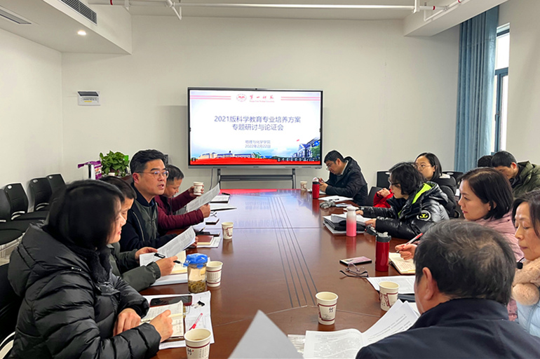 为进一步完善并优化科学教育专业本科人才培养方案,提高人才培养质量,2月22日下午,学院在百熙楼1013会议室组织召开科学教育专业人才培养方案专题研讨和论证会,会议由副院长许兰主持。学院党委书记陈志武、副院长罗朝明、科学教育专业负责人刘志敏教授、科学教育系主任黄文教授、科学教育系教师和合同制教师张代兵等参加了本次会议。