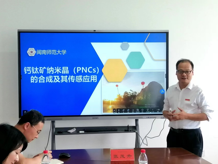 物理系、化学系全体教师作题为“钙钛矿纳米晶(PNCs)的合成及其传感应用”的学术讲座。讲座由韩国伦理