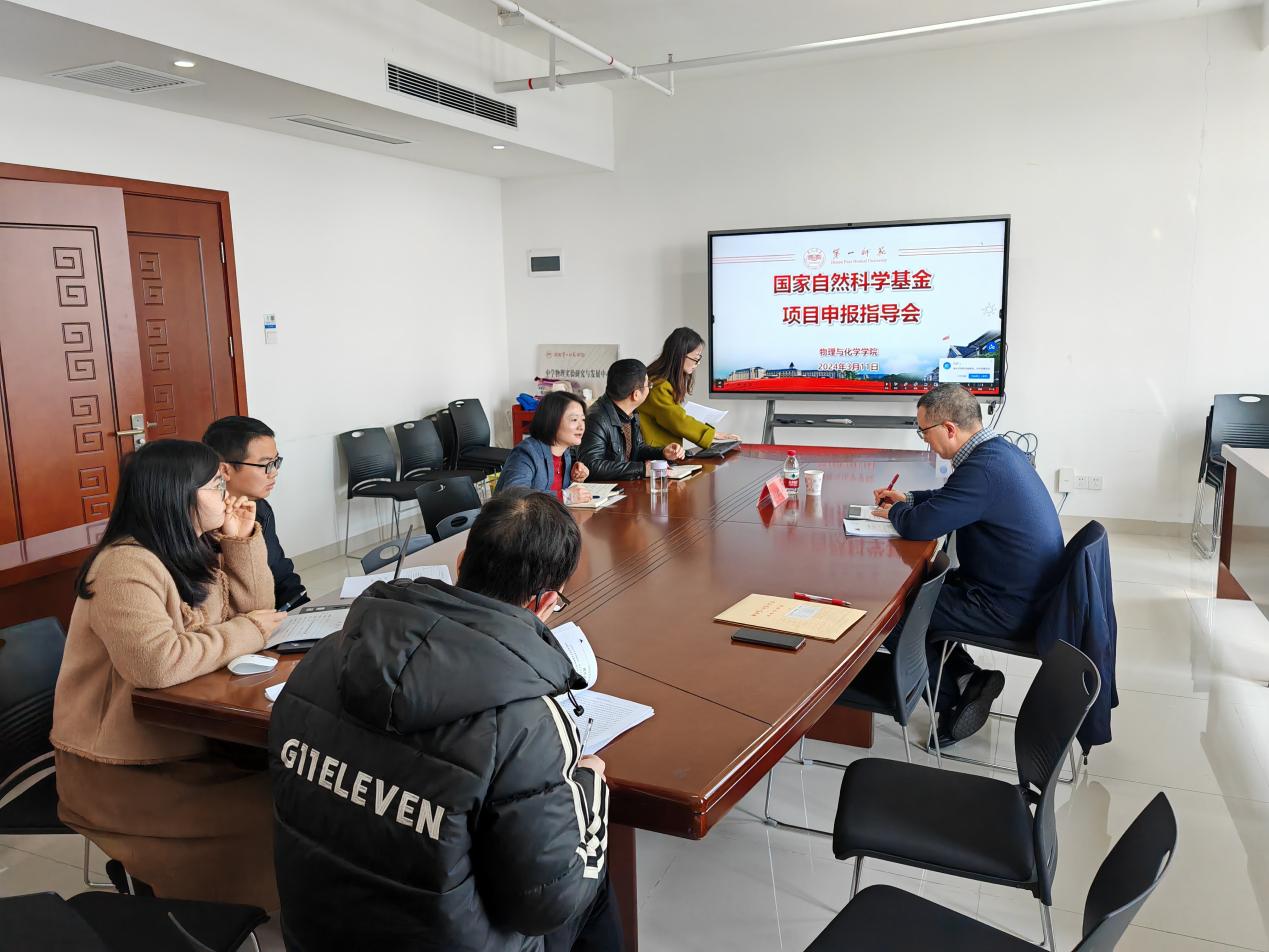 特邀长江学者特聘教授、“万人计划”科技创新领军人才、湖南师范大学物理与电子科学学院院长、交叉科学研究院院长刘红荣教授来百熙楼1013进行国家自然科学基金项目专题讲座指导。会议由许兰院长主持,吴昌义副院长、物理系、化学系、交叉系科研骨干和青年博士参与了本次讲座交流。