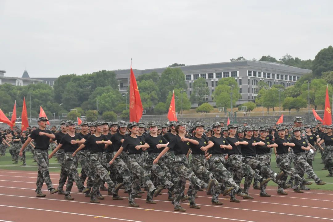 学子以饱满的热情,整肃的军容,坚定的步履接受检阅。走分列式时,他们步伐整齐、口号嘹亮,尽显青春之激昂;摆特色方阵时,他们拳拳有力、步步生风,用行动践行“请党放心,强国有我”的坚定信念;彩旗挥舞时,目光所至,皆为华夏,他们以一颗热血之心献礼新中国成立73周年。至此,军训成果展示到此完毕。