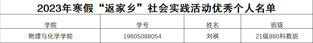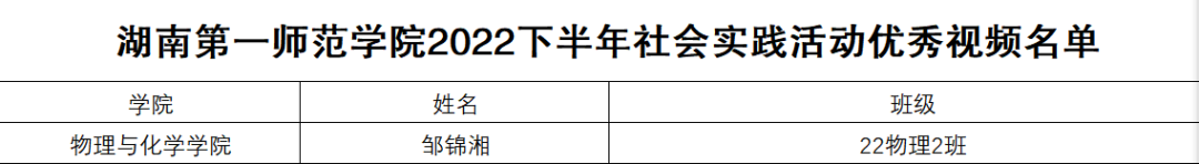 在2023年寒假社会实践活动中荣获“优秀组织单位”称号,彭杰丽、许善美、杜灵娜、李若颖、符传再五名同学获校级2023年大学生寒假社会实践优秀个人,邹锦湘同学获2023年寒假社会实践活动优秀视频奖,刘祺同学获2023年寒假“返家乡”社会实践优秀个人。