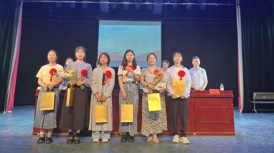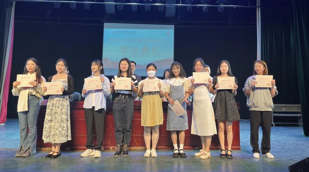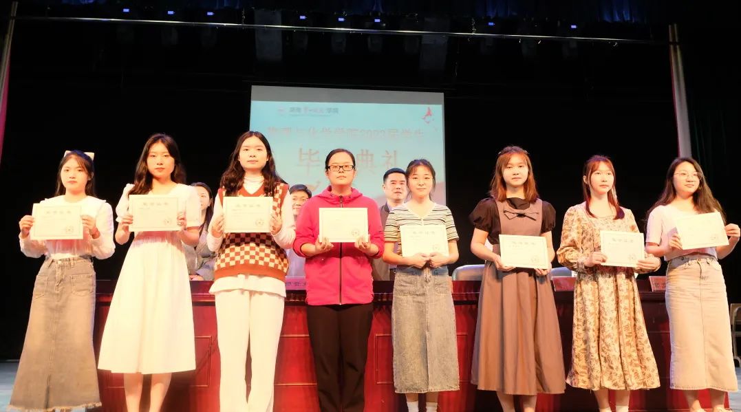 典礼在雄伟的国歌声中拉开帷幕。在播放毕业纪念视频后,许院长宣读《关于表彰2023届省级优秀毕业生和创新创业优秀毕业生的决定》;邹院长宣读《关于表彰2023届校级优秀毕业生和创新创业优秀毕业生的决定》;郭院长宣读《关于表彰2023届毕业生考取硕士研究生的决定》。获奖的优秀个人代表依次上台领奖并与老师们合影留念。