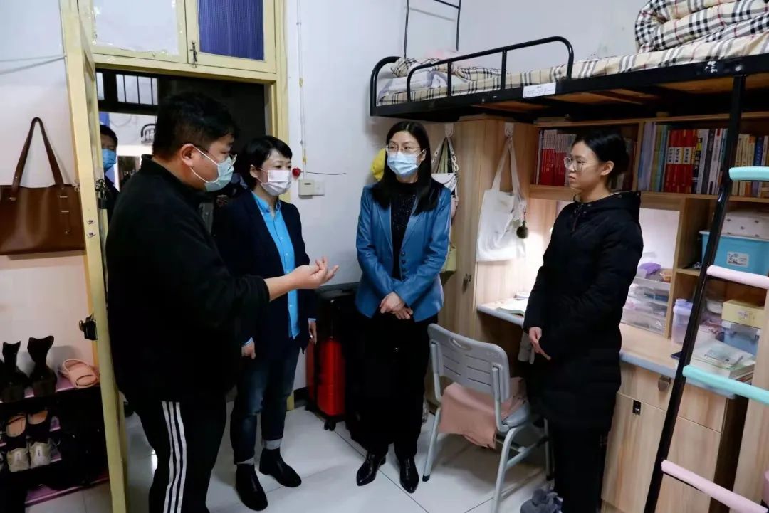 走访中,蒋校长细心询问同学们进行网上课程的相关学习情况,真切关心同学们的寝室生活作息,嘱咐同学们按时打卡,期间与大四毕业生亲切交谈,询问同学们的职业规划,关心同学们的考研进展,高屋建瓴分析研判考研形势,提出笔试面试的珍贵建议。蒋校长希望同学们能将所学专业知识合理运用实践,积极进行劳动教育,锻炼自我,成就自我,将课余活动与学业有机结合起来,开拓视野,增长知识面,实现多元化全面发展。