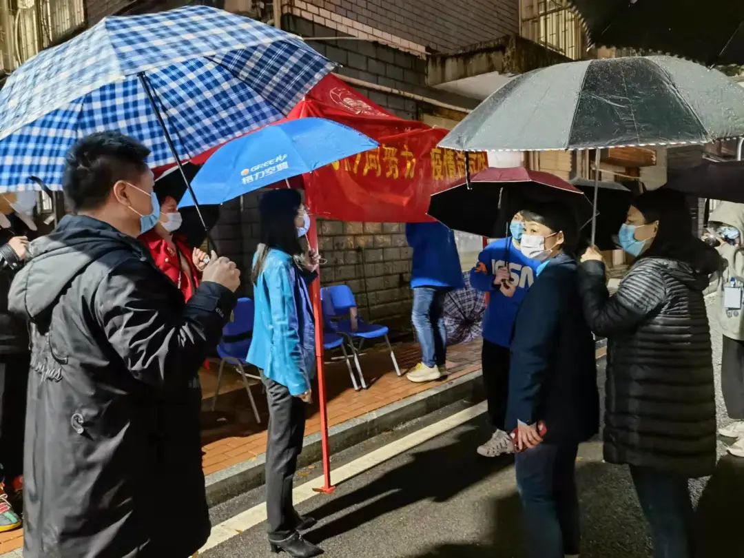 微雨蒙蒙,蒋校长一行来到西侧马路,看望坚守岗位的志愿者,对同学们的工作表示高度肯定,提醒大家及时添衣保暖,保护好自身健康,才可以才能够为防疫做更多的贡献!