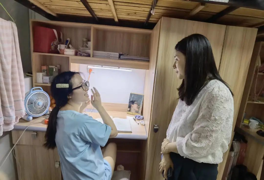 大一至大四学生。老师们首先走访了大四寝室并与应届毕业生展开深入交流,关切地询问了同学们论文查重情况和毕业答辩准备,并仔细查看了毕业生的宿舍情况,希望同学们营造良好的生活环境。