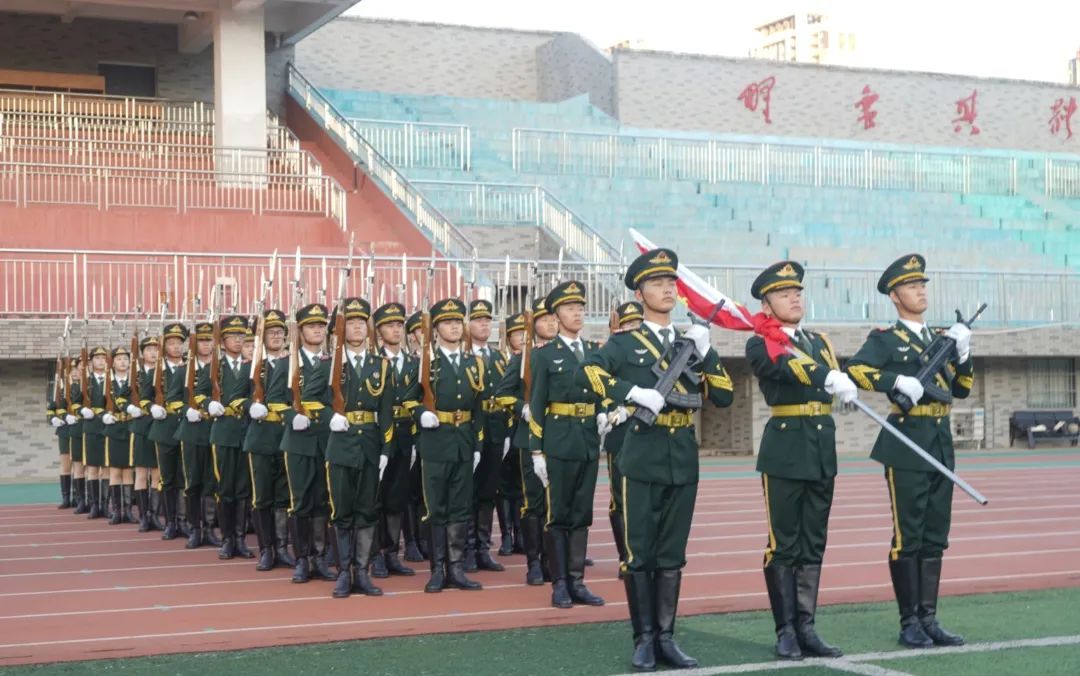 国旗队护旗手迈着矫健的步伐,护着鲜艳的五星红旗入场,在全体师生的注目下,五星红旗冉冉升起,在场师生敬礼仰注,齐唱国歌,仰望五星红旗迎着朝阳升起,全体师生心中盈满自豪之情。